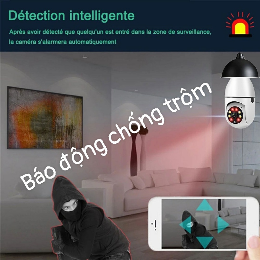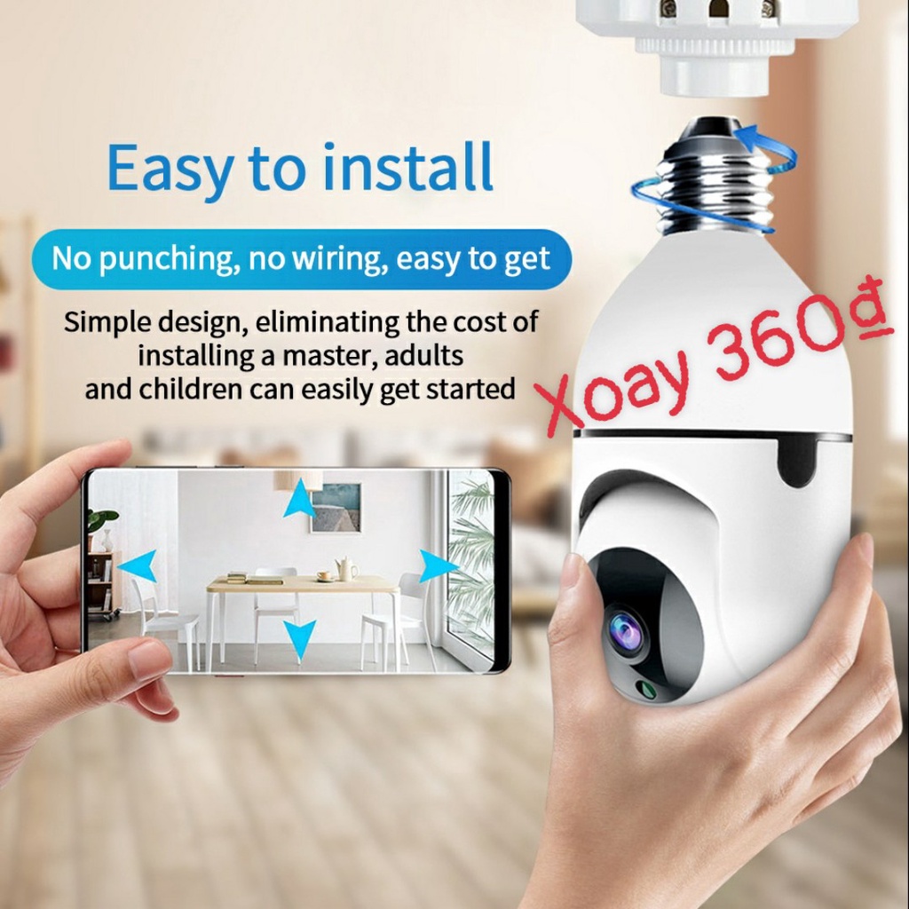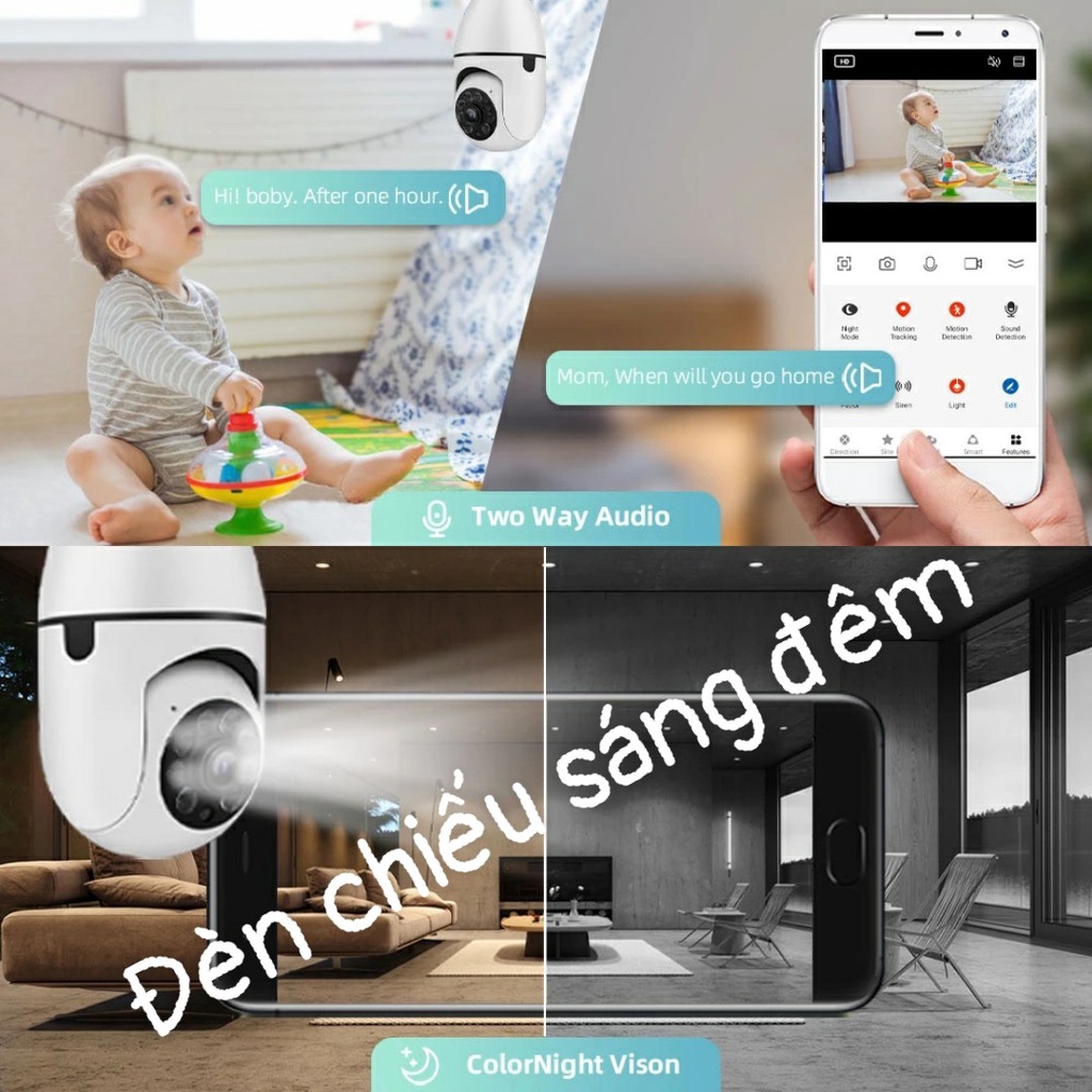 Hỗ trợ âm thanh hai chiều, micrô và loa tích hợp - Dùng đui đèn vặn bất kỳ nối điện trực tiếp 220V