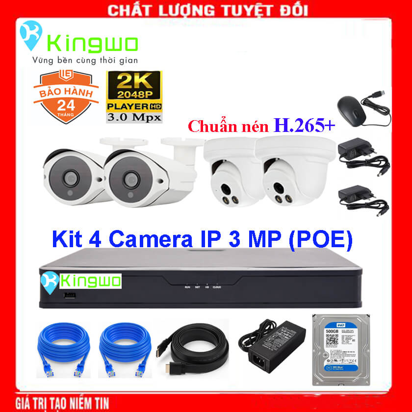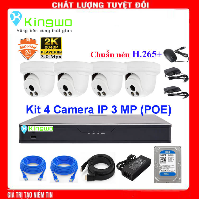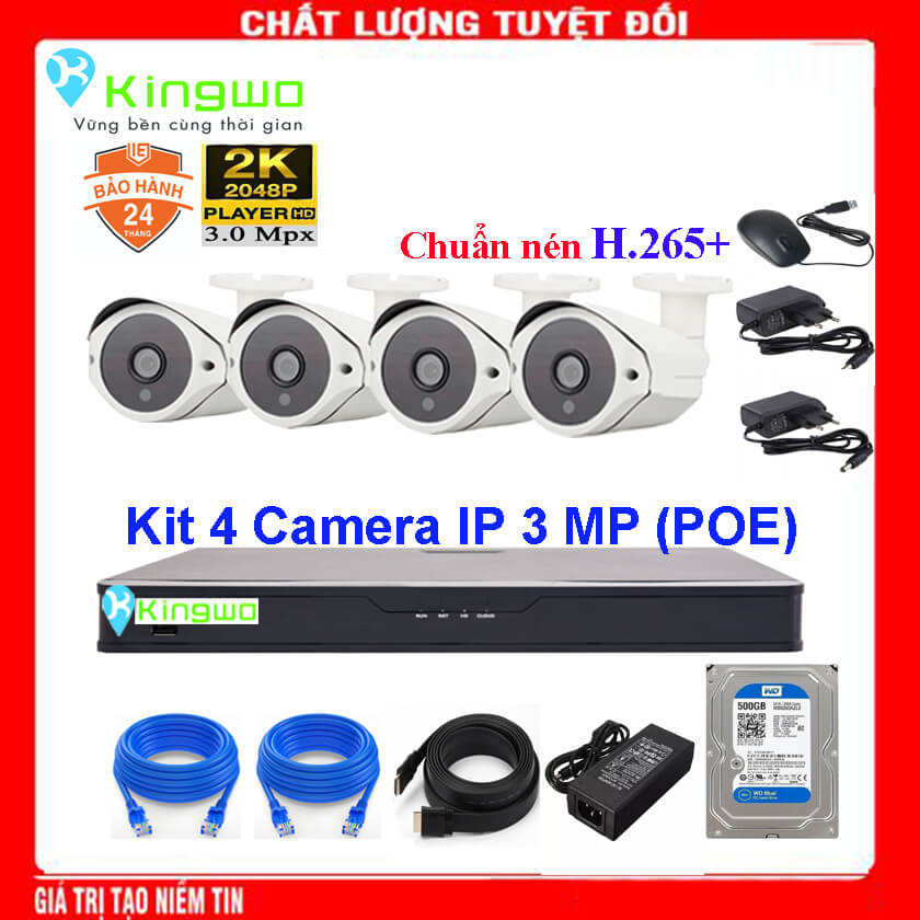 Lắp trọn gói 3 camera KingWo POE: 6.550.000đ